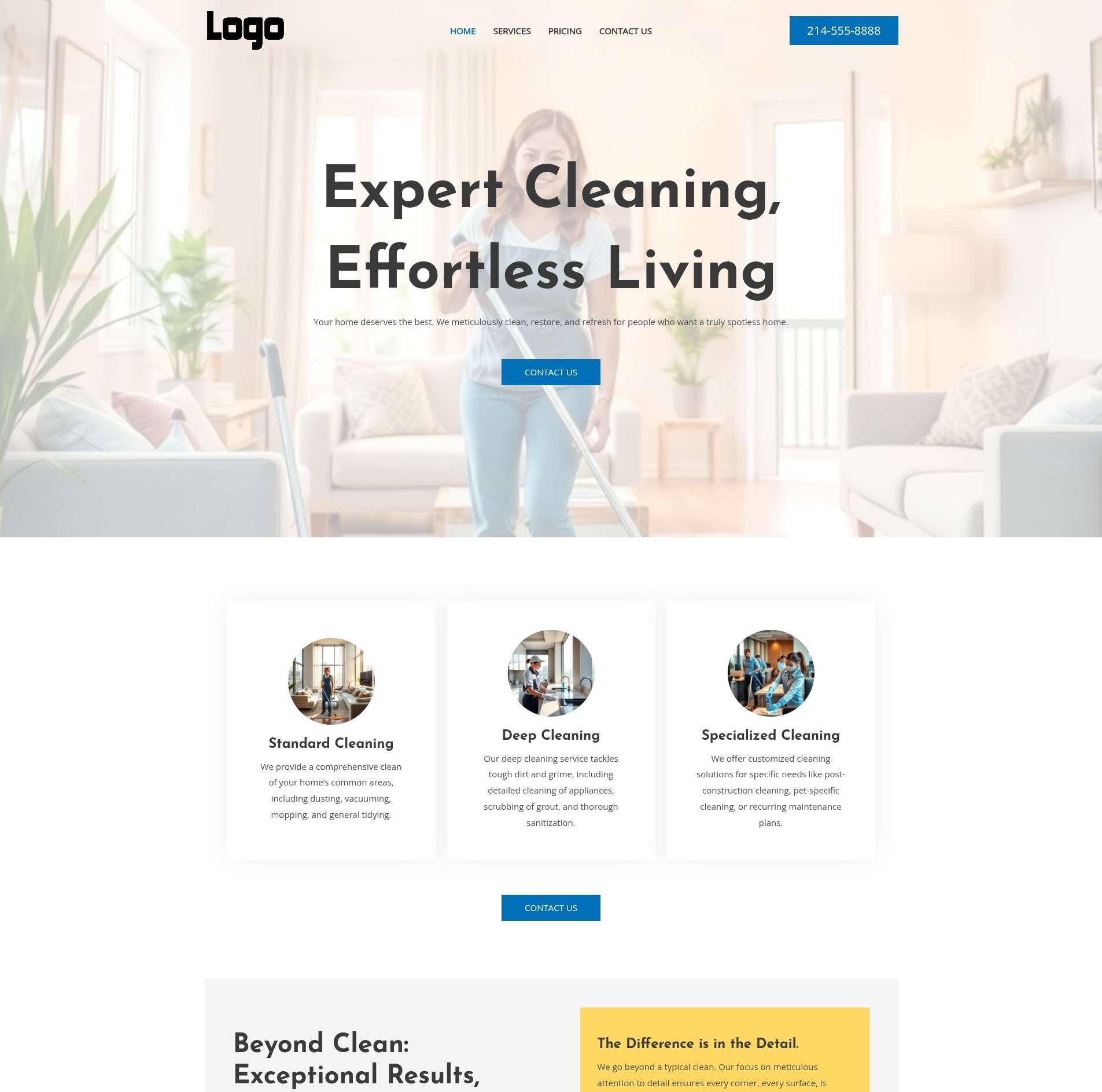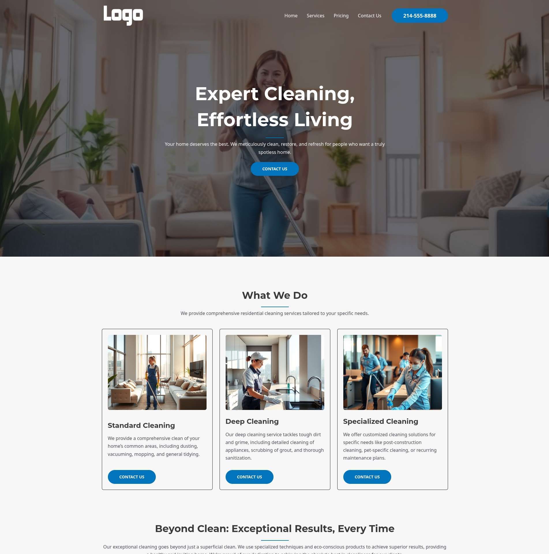 This example features a Local Service Business (Residential Cleaning Service) as a model. The website’s text, images, and branding will be customized to reflect your unique business during development, ensuring complete optimization before your website goes live.