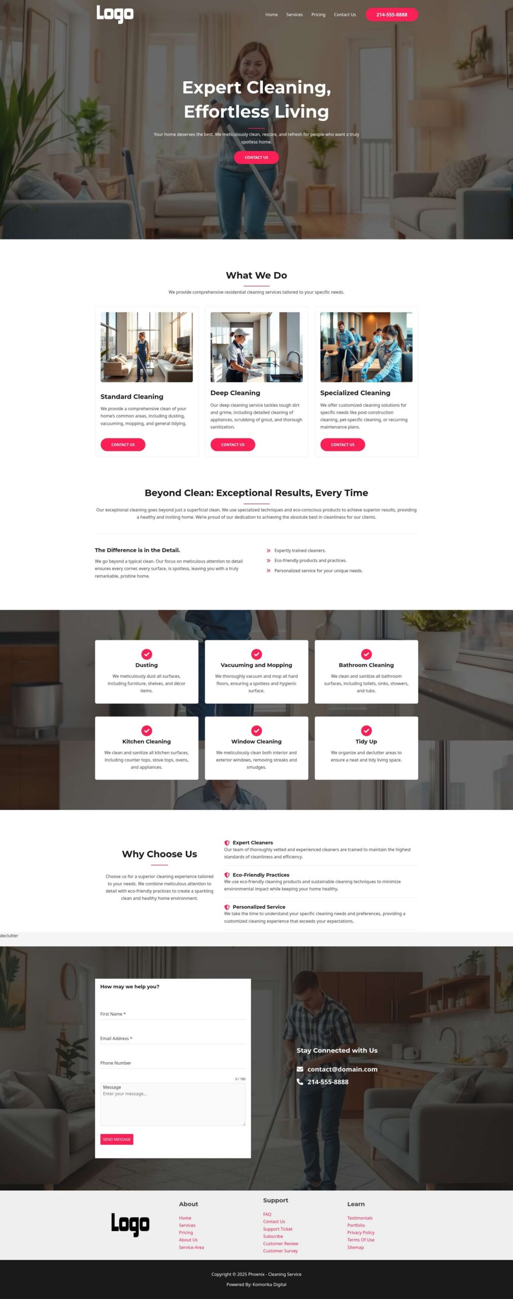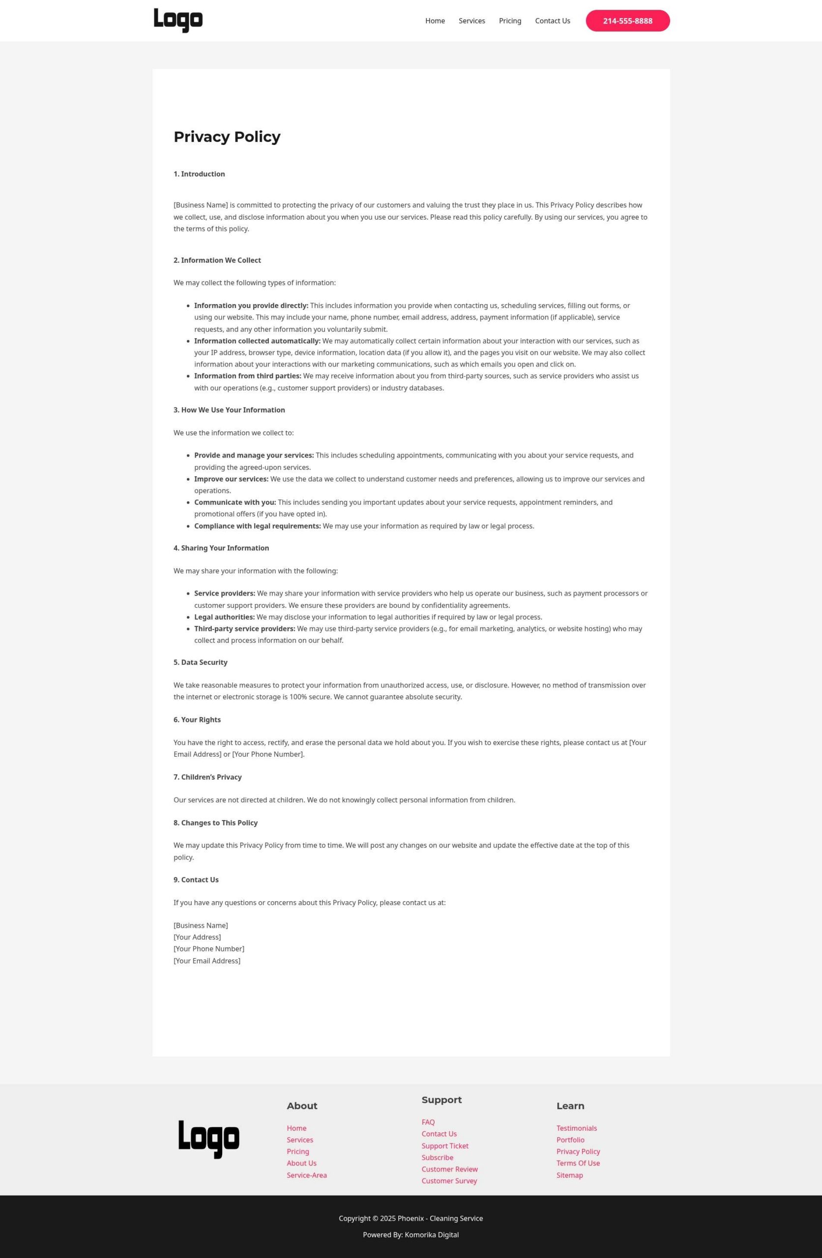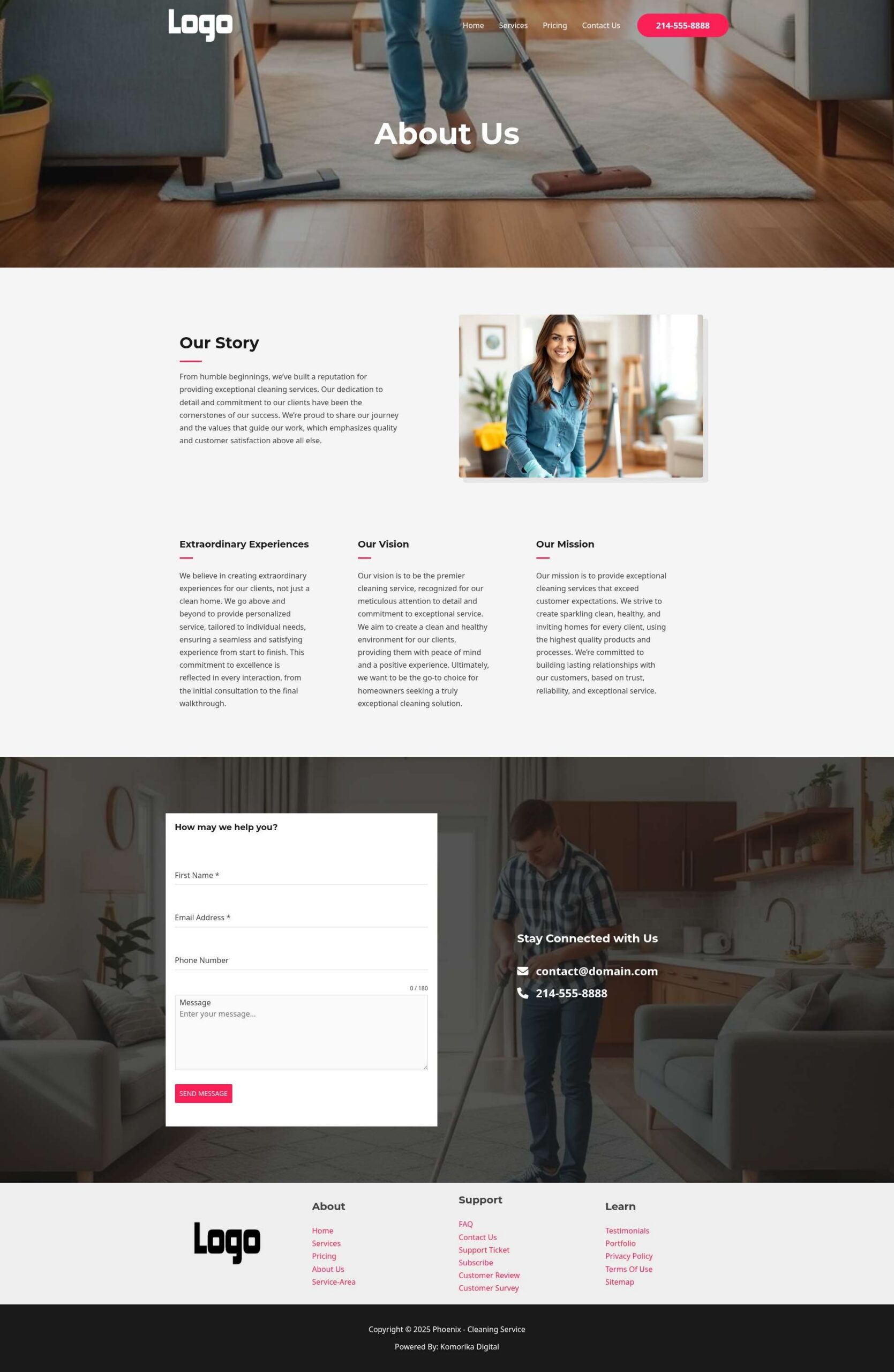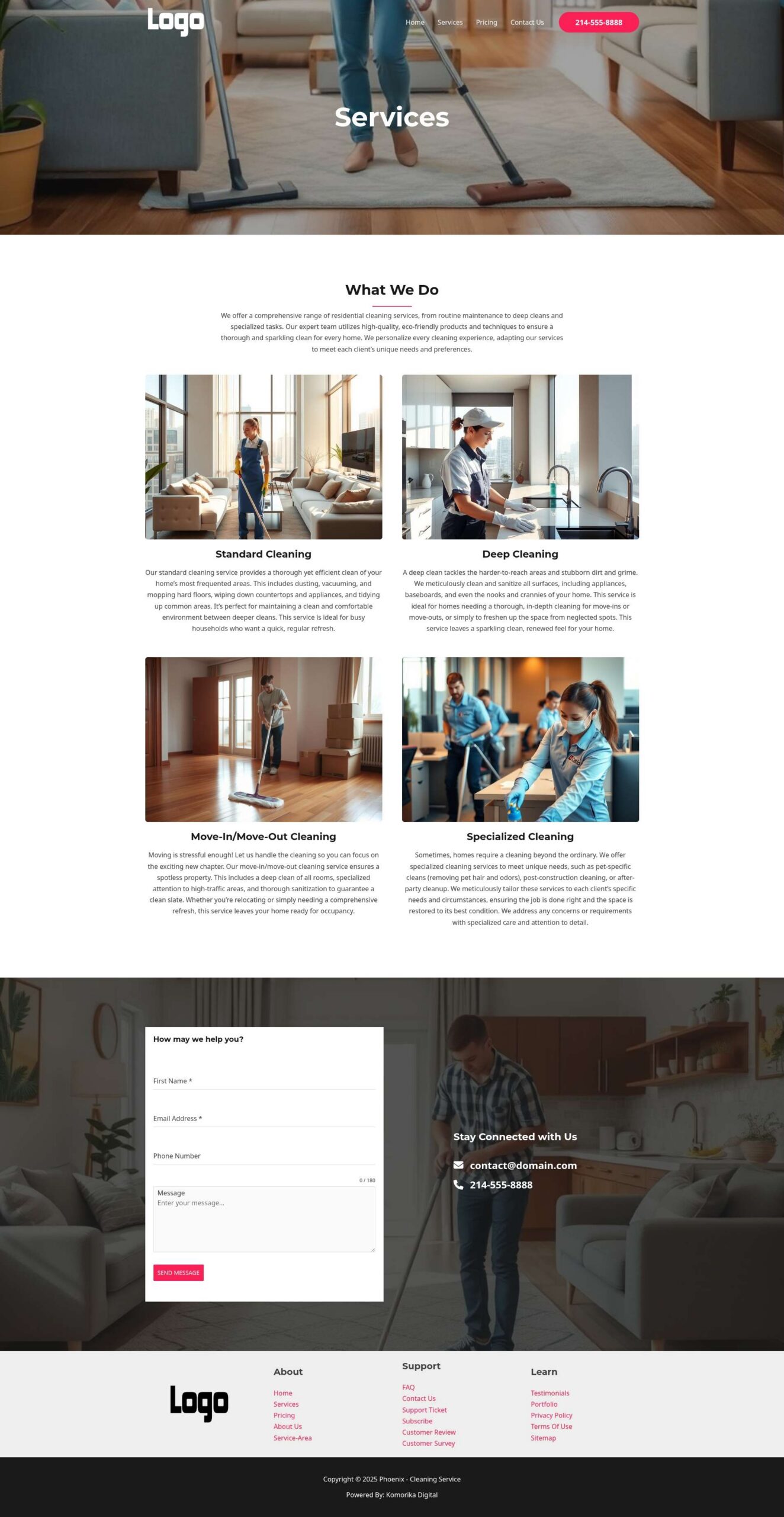 This example features a Local Service Business (Residential Cleaning Service) as a model. The website’s text, images, and branding will be customized to reflect your unique business during development, ensuring complete optimization before your website goes live.