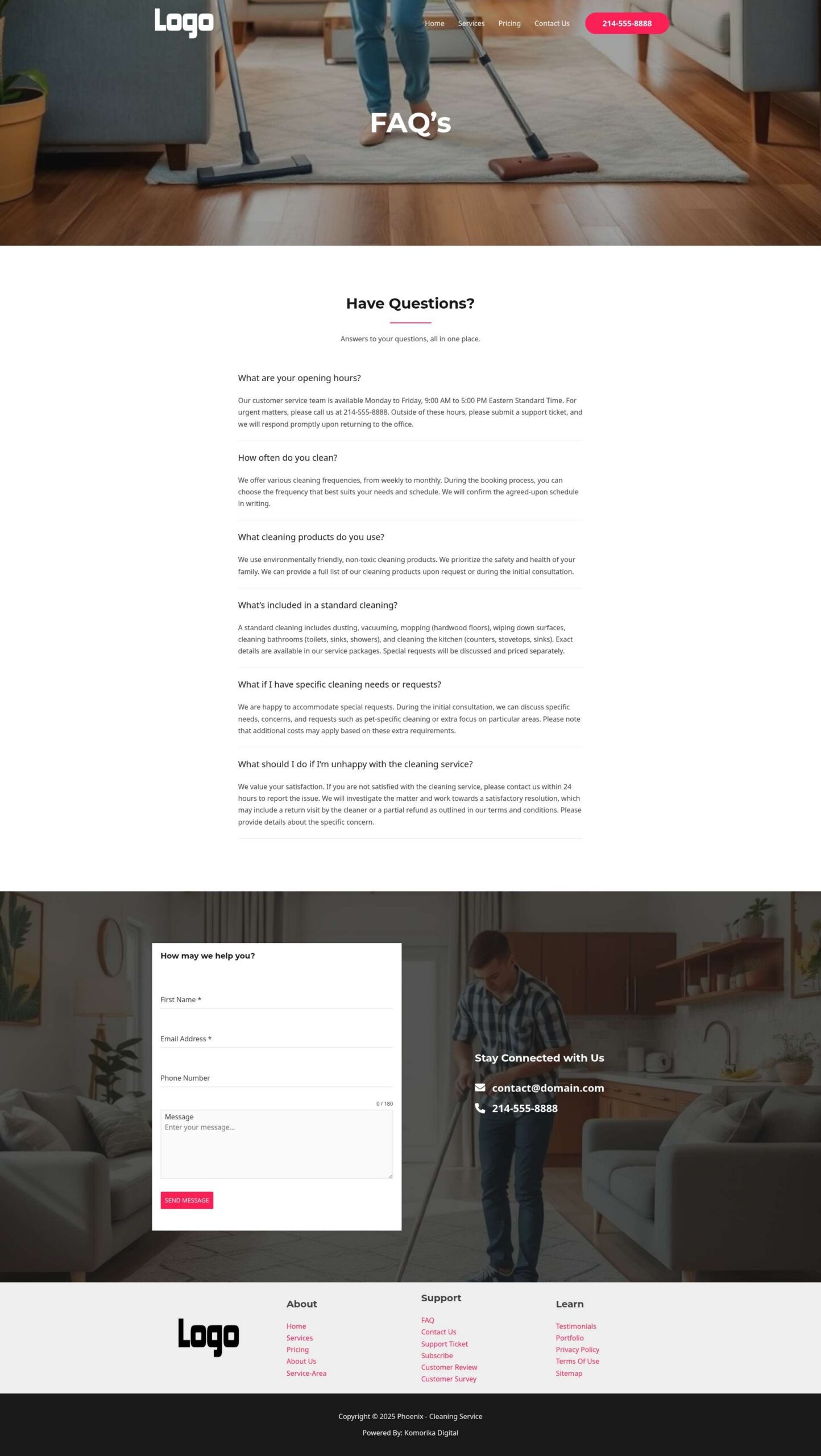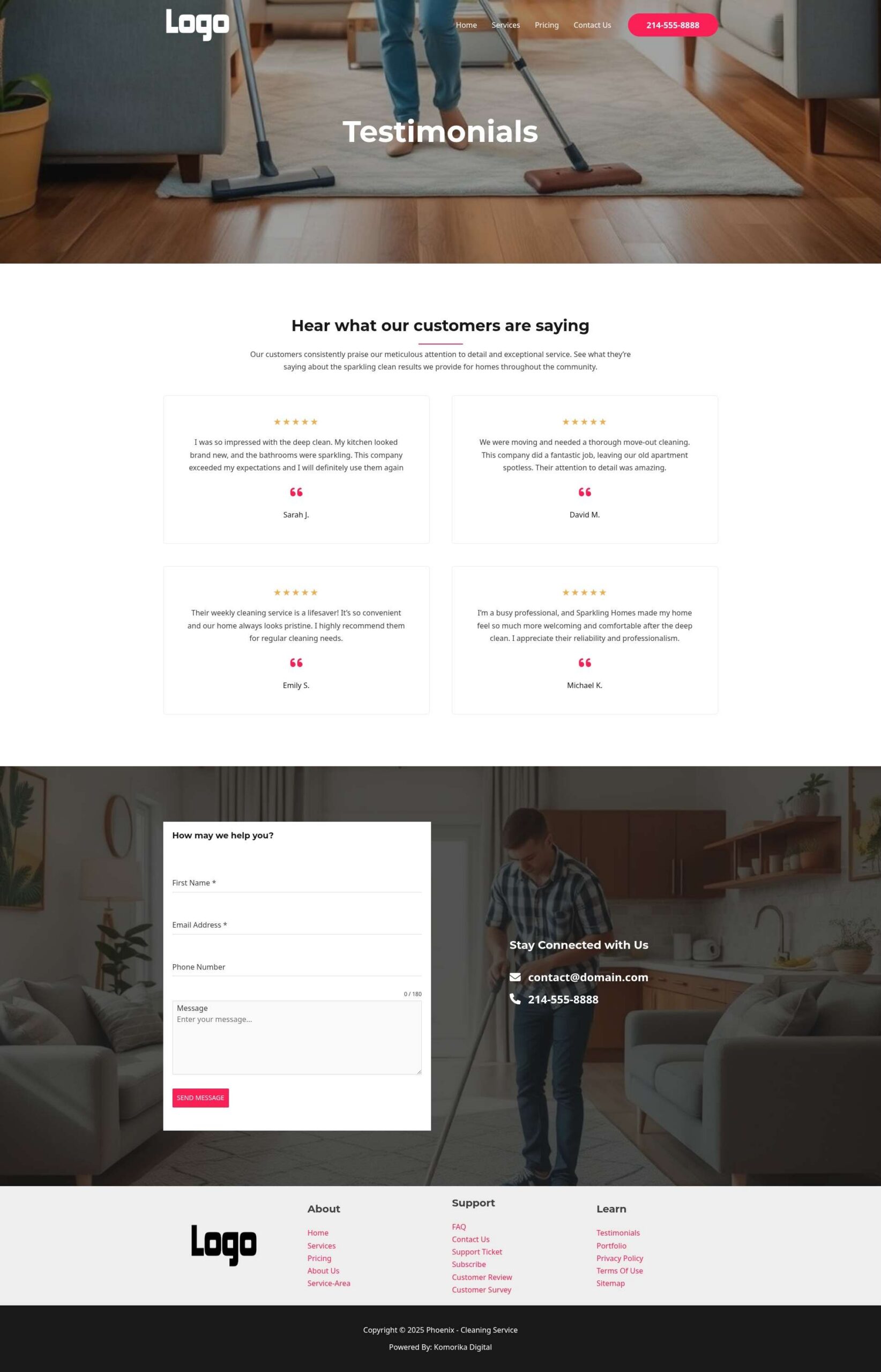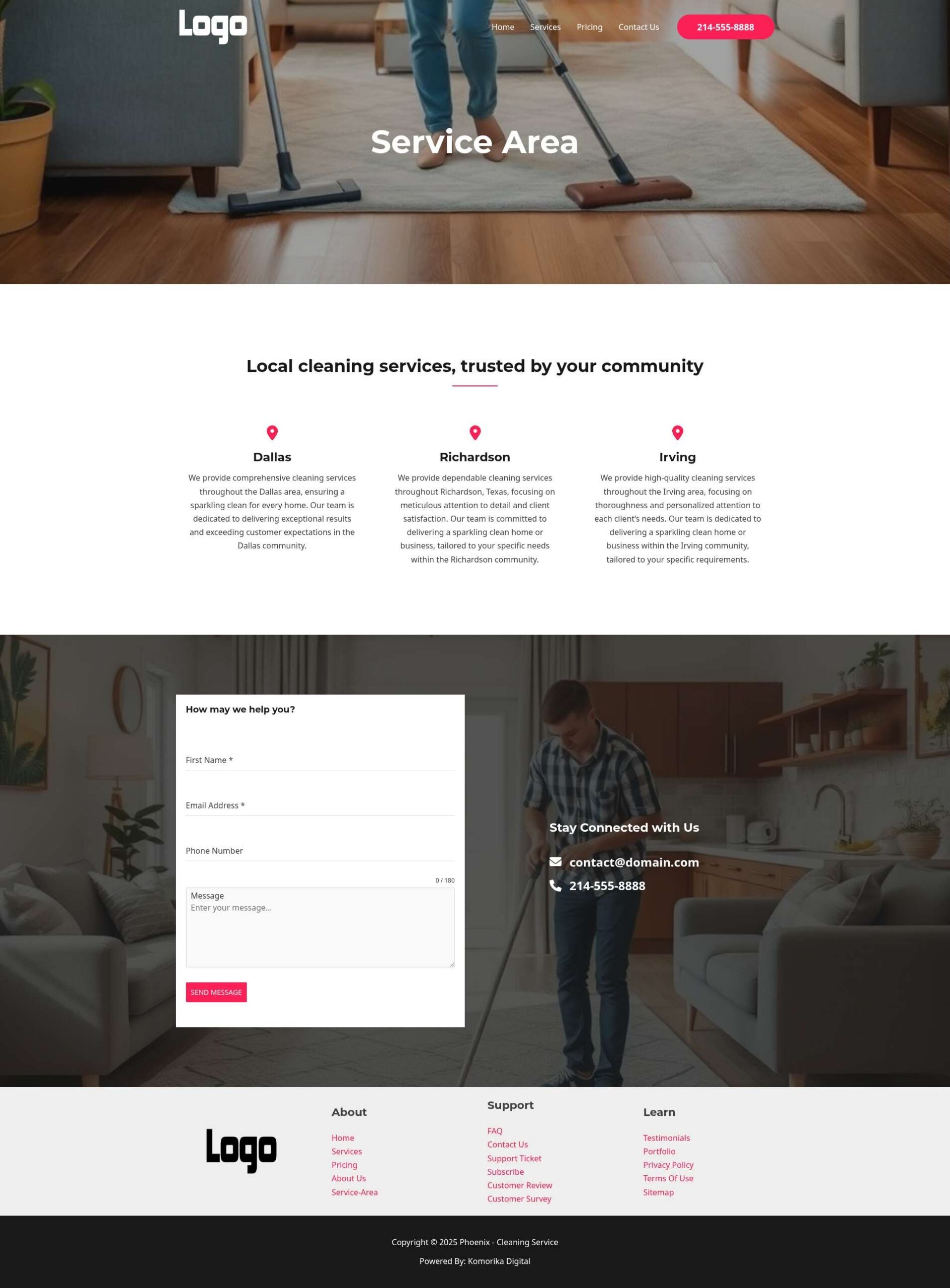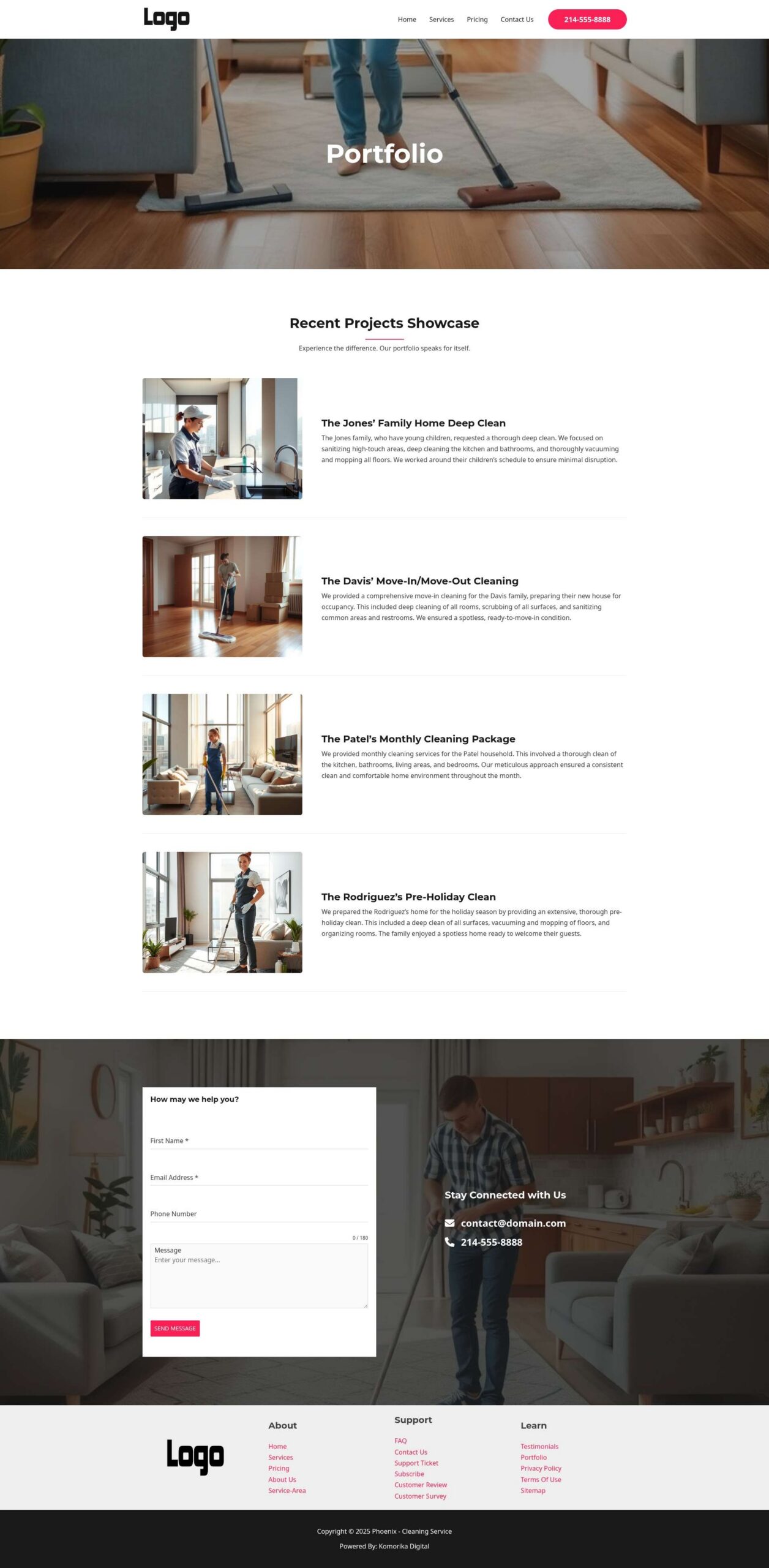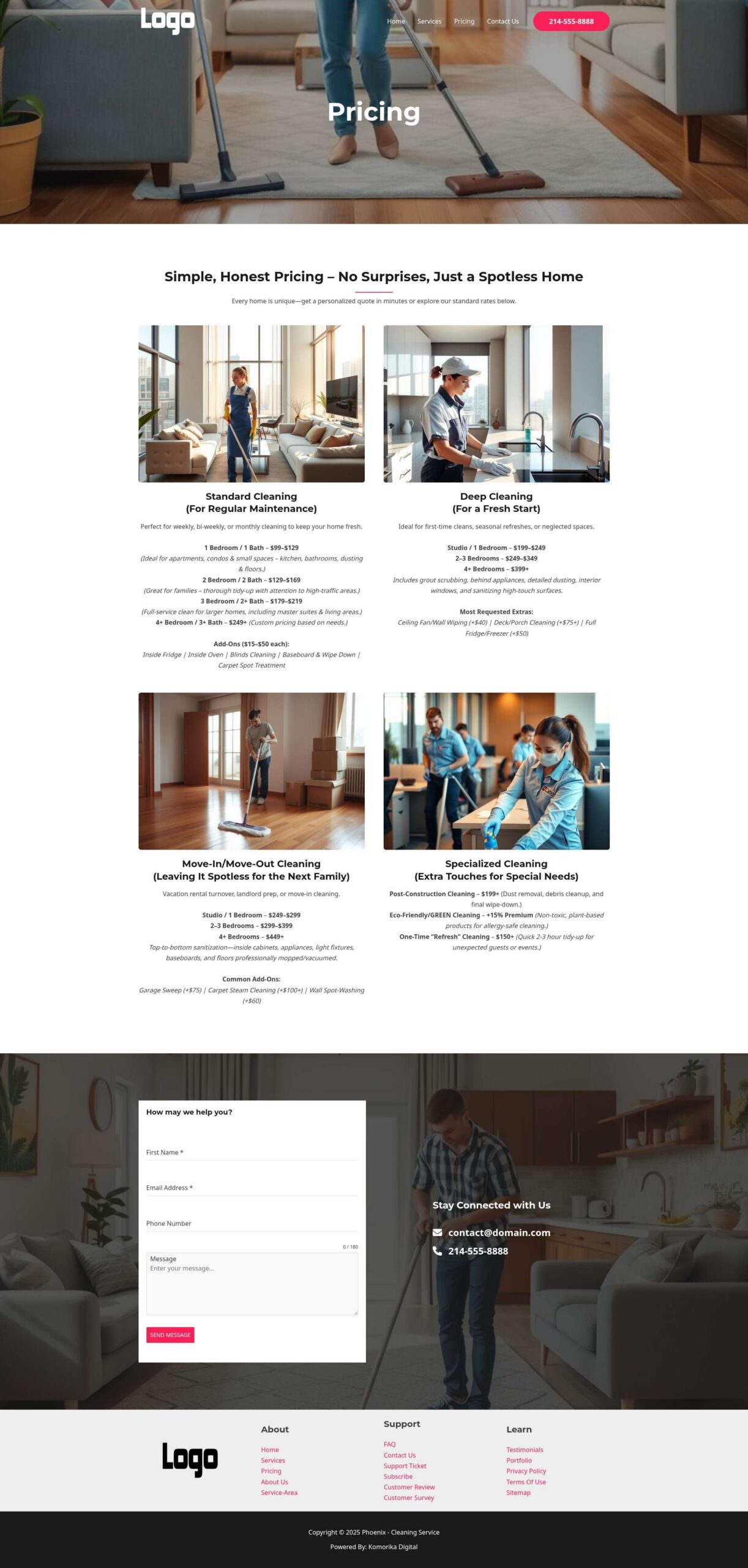 This example features a Local Service Business (Residential Cleaning Service) as a model. The website’s text, images, and branding will be customized to reflect your unique business during development, ensuring complete optimization before your website goes live.