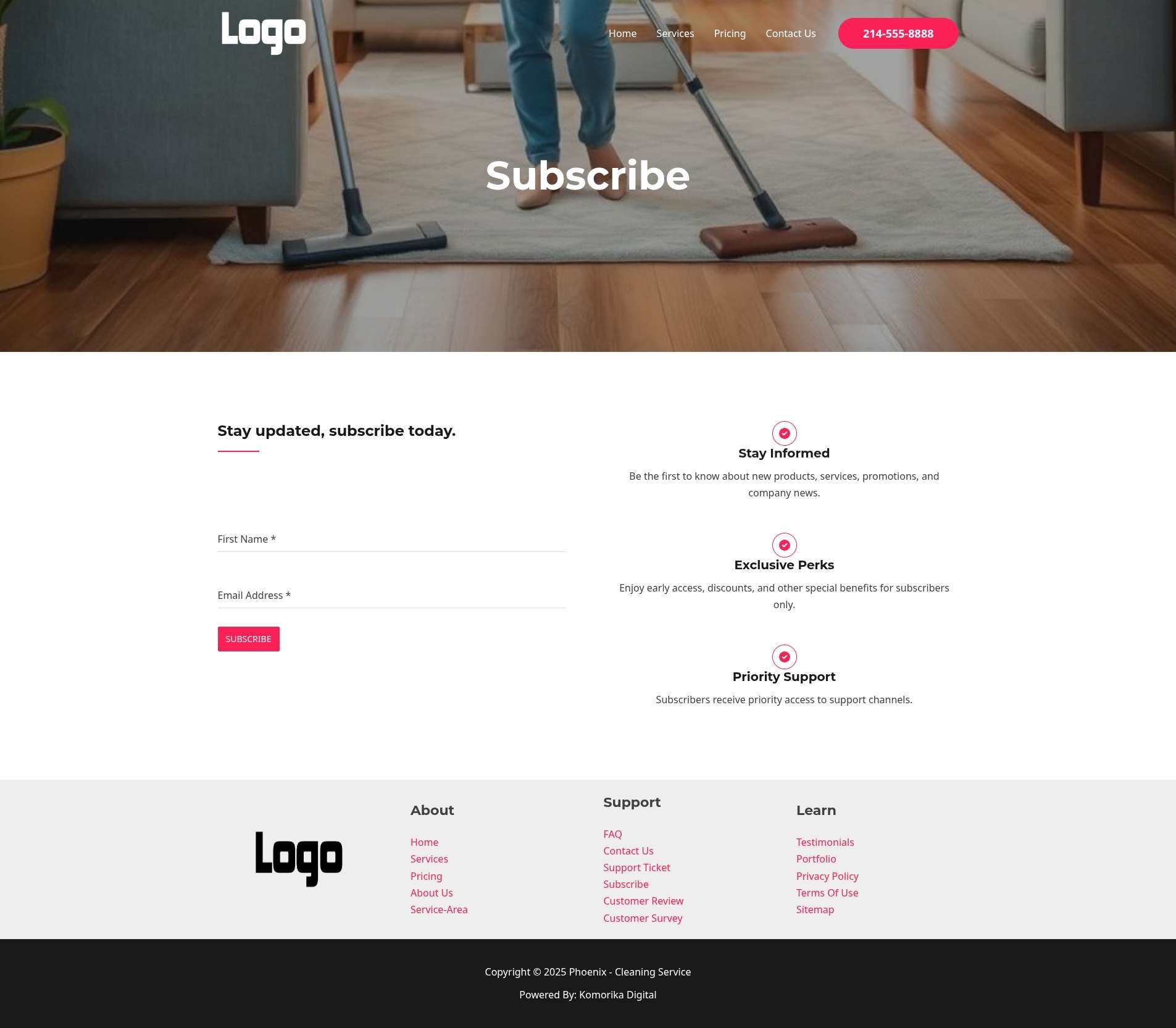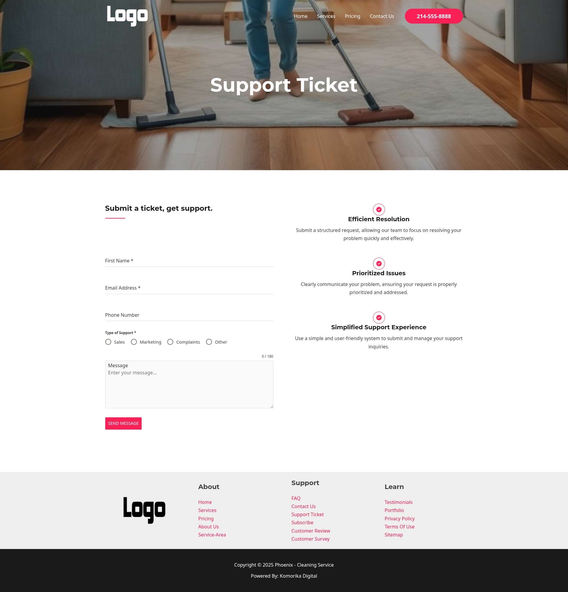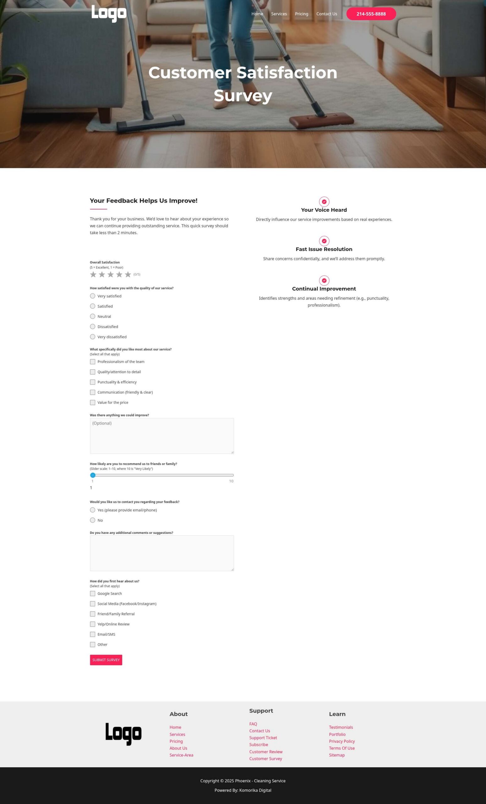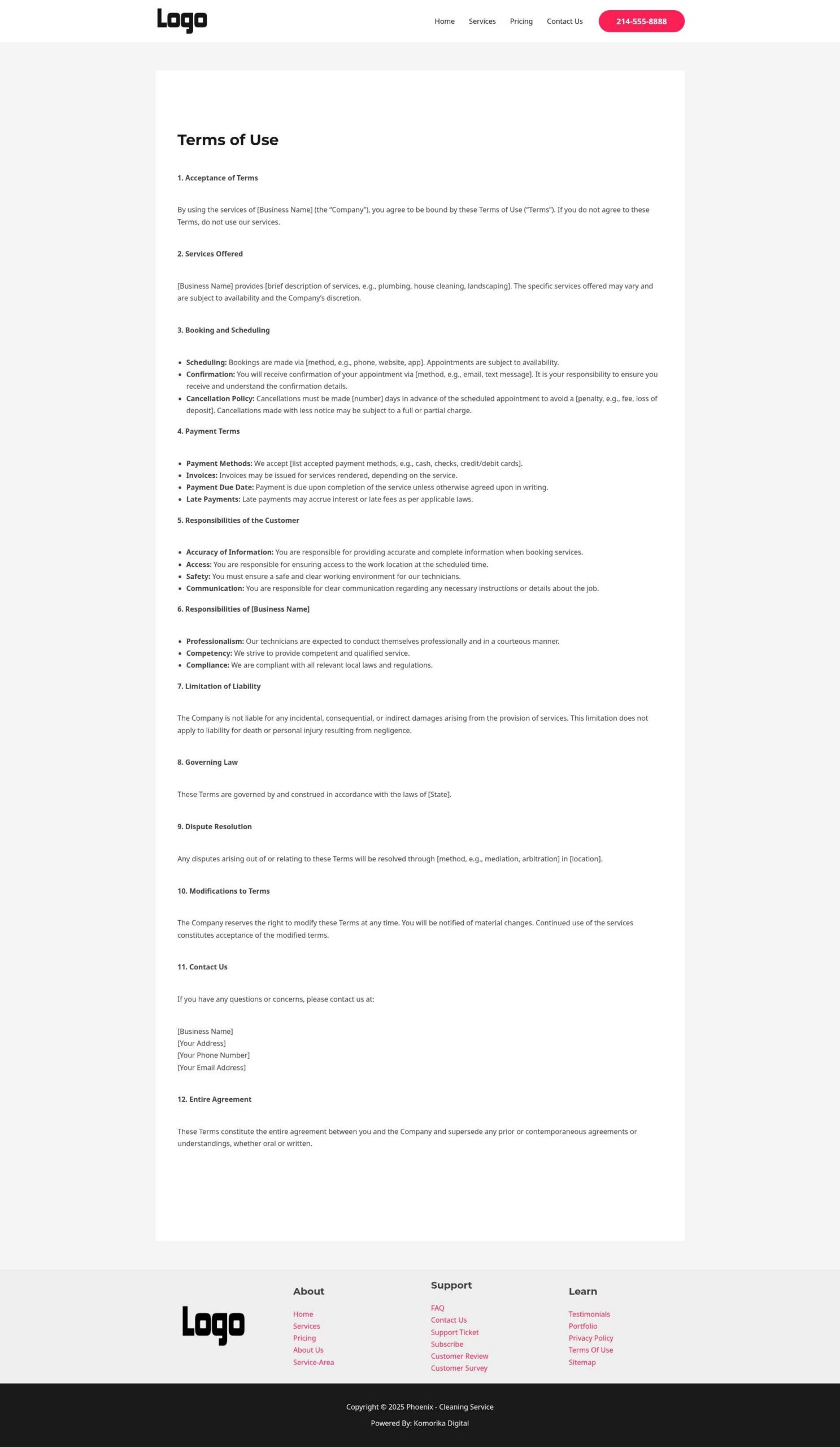 This example features a Local Service Business (Residential Cleaning Service) as a model. The website’s text, images, and branding will be customized to reflect your unique business during development, ensuring complete optimization before your website goes live.