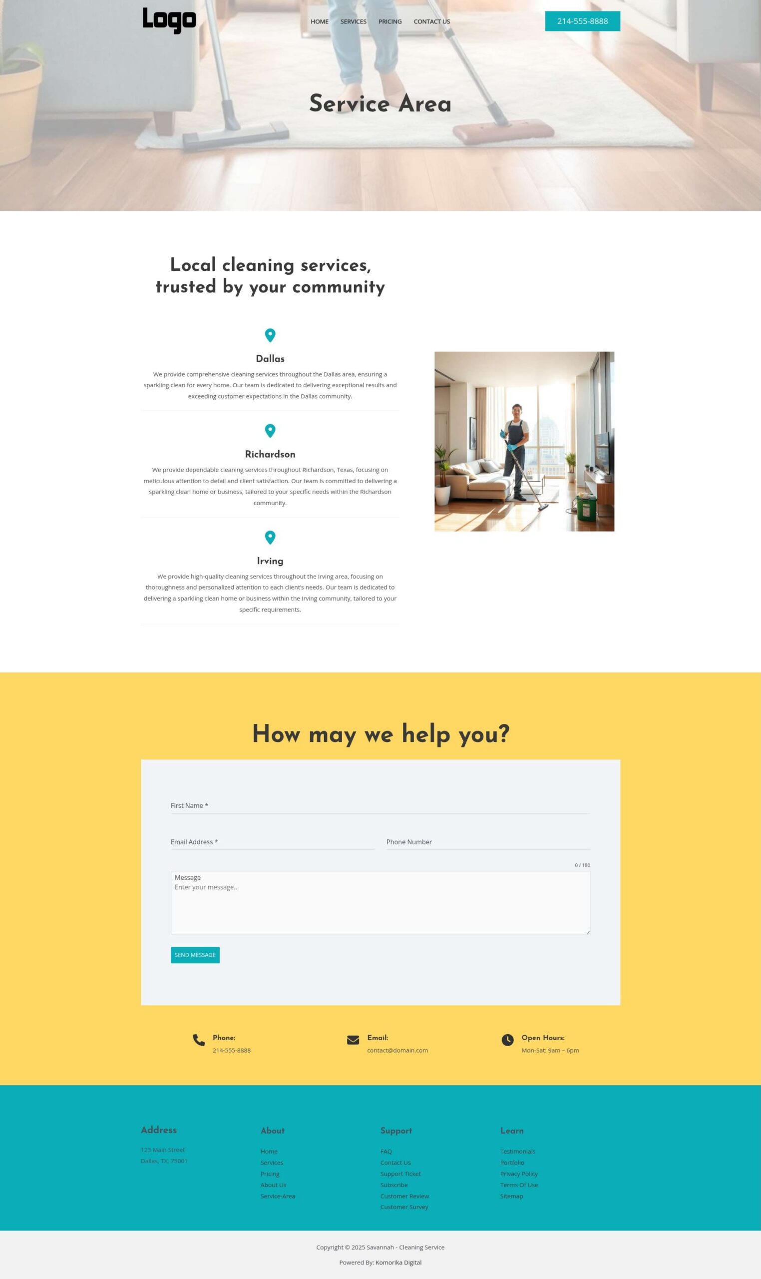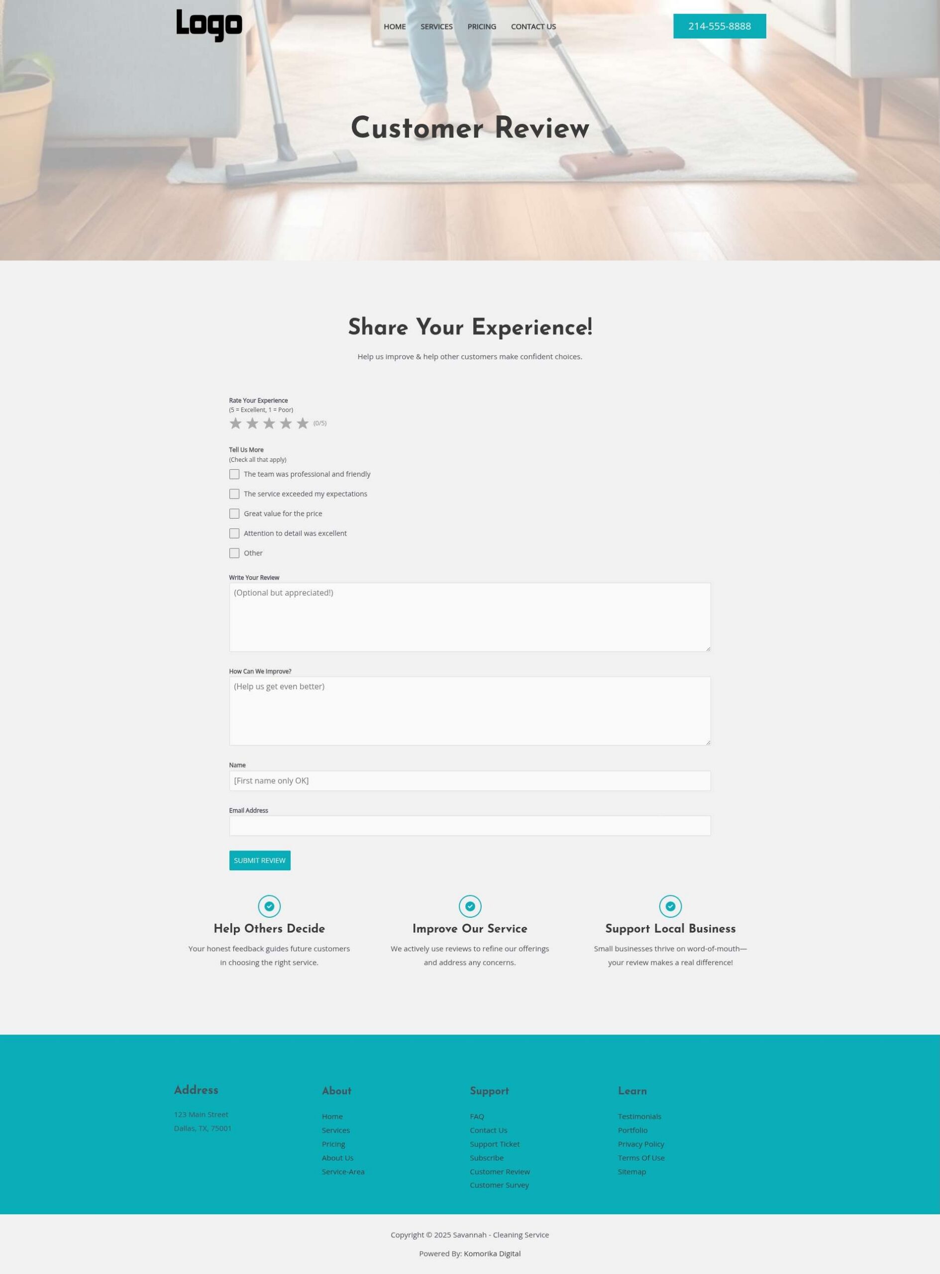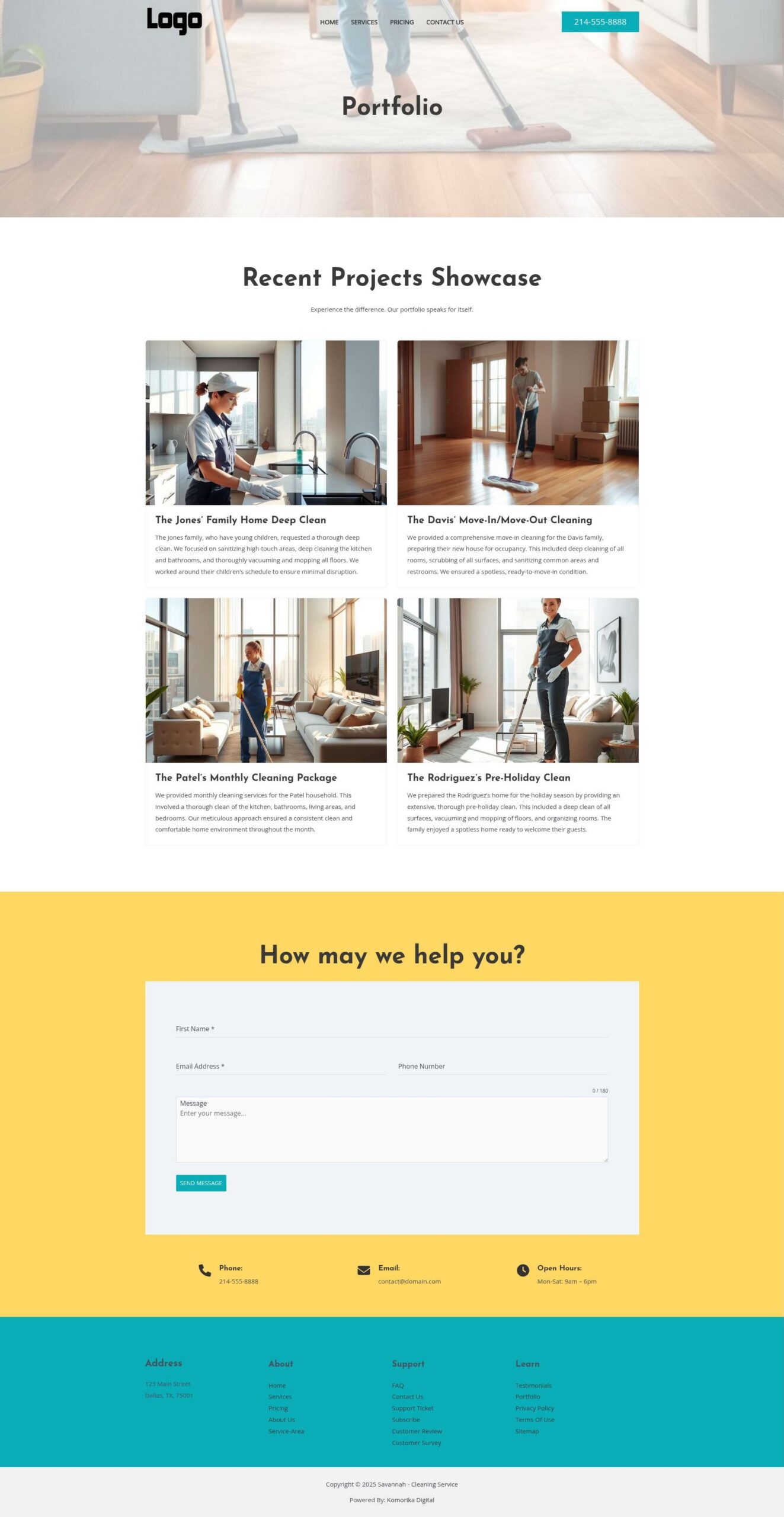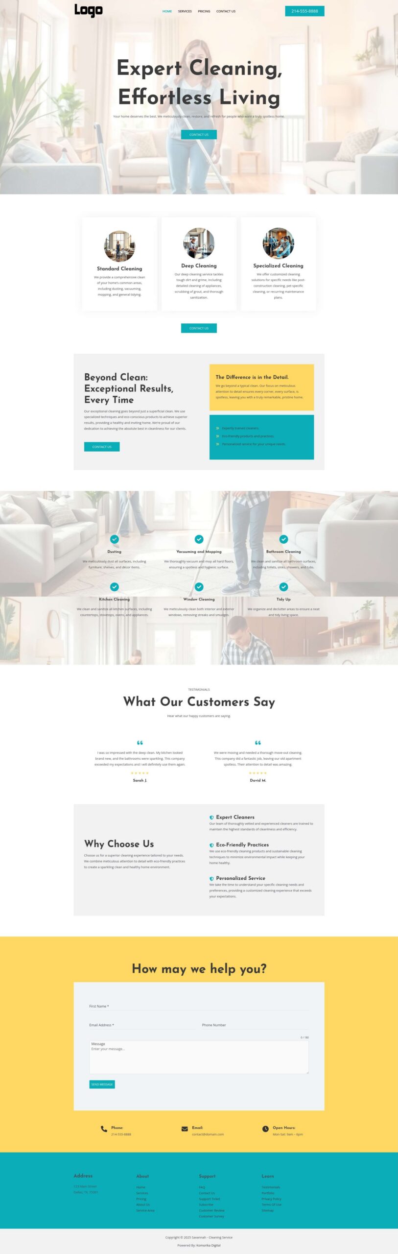 This example features a Local Service Business (Residential Cleaning Service) as a model. The website’s text, images, and branding will be customized to reflect your unique business during development, ensuring complete optimization before your website goes live.