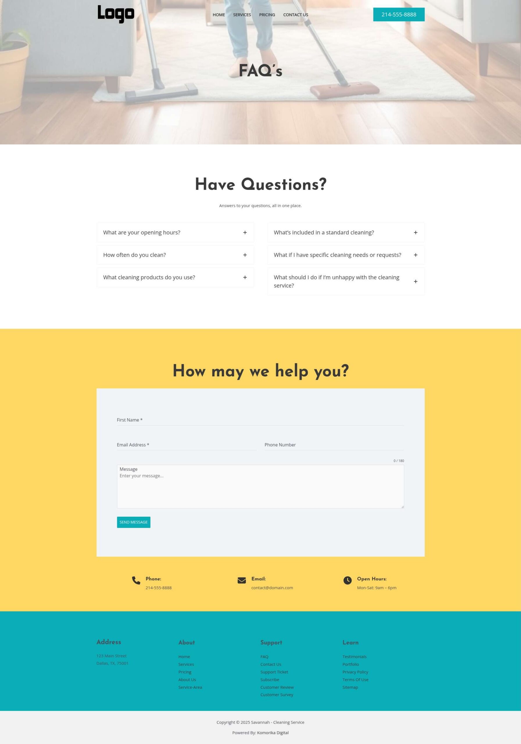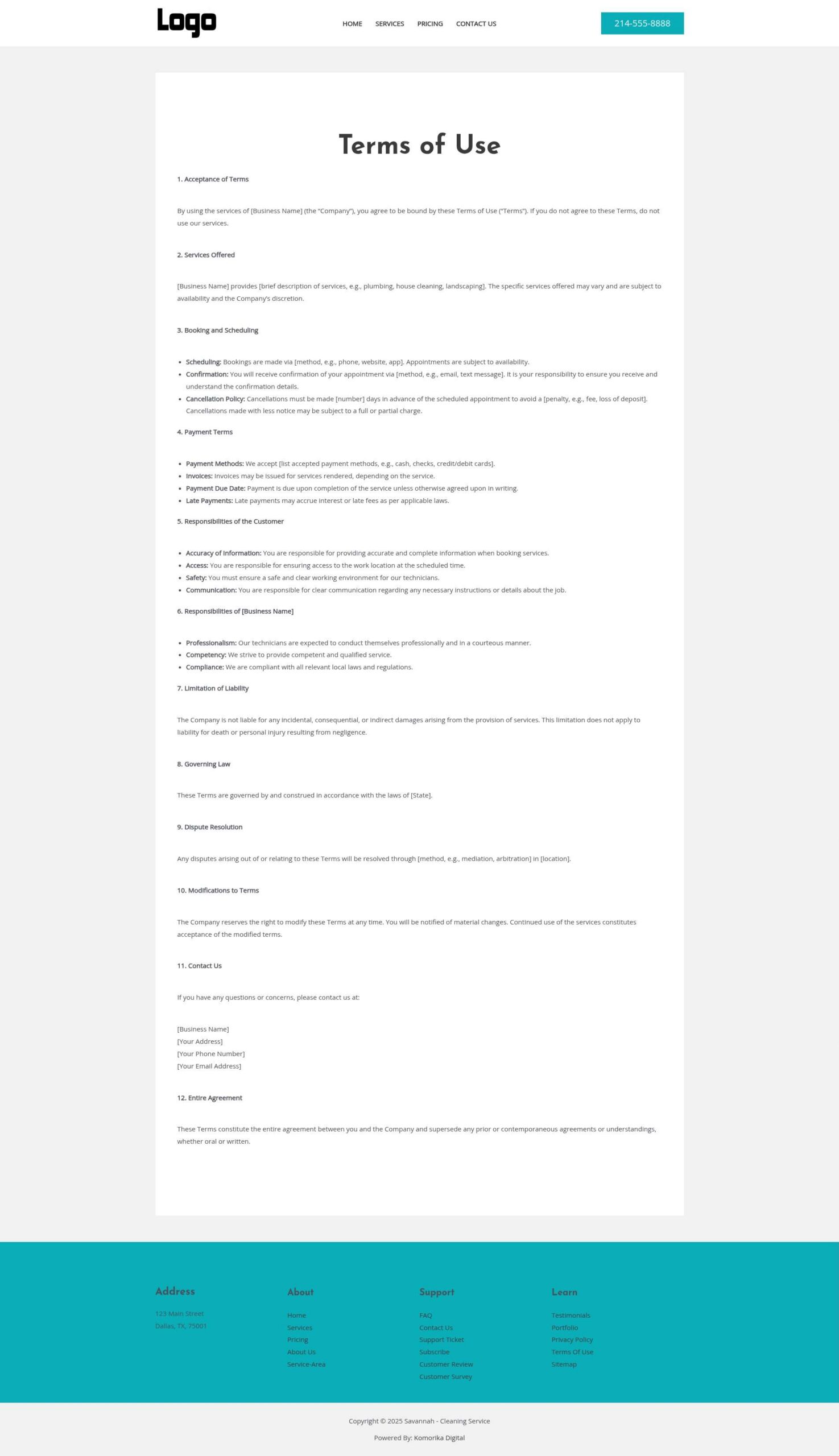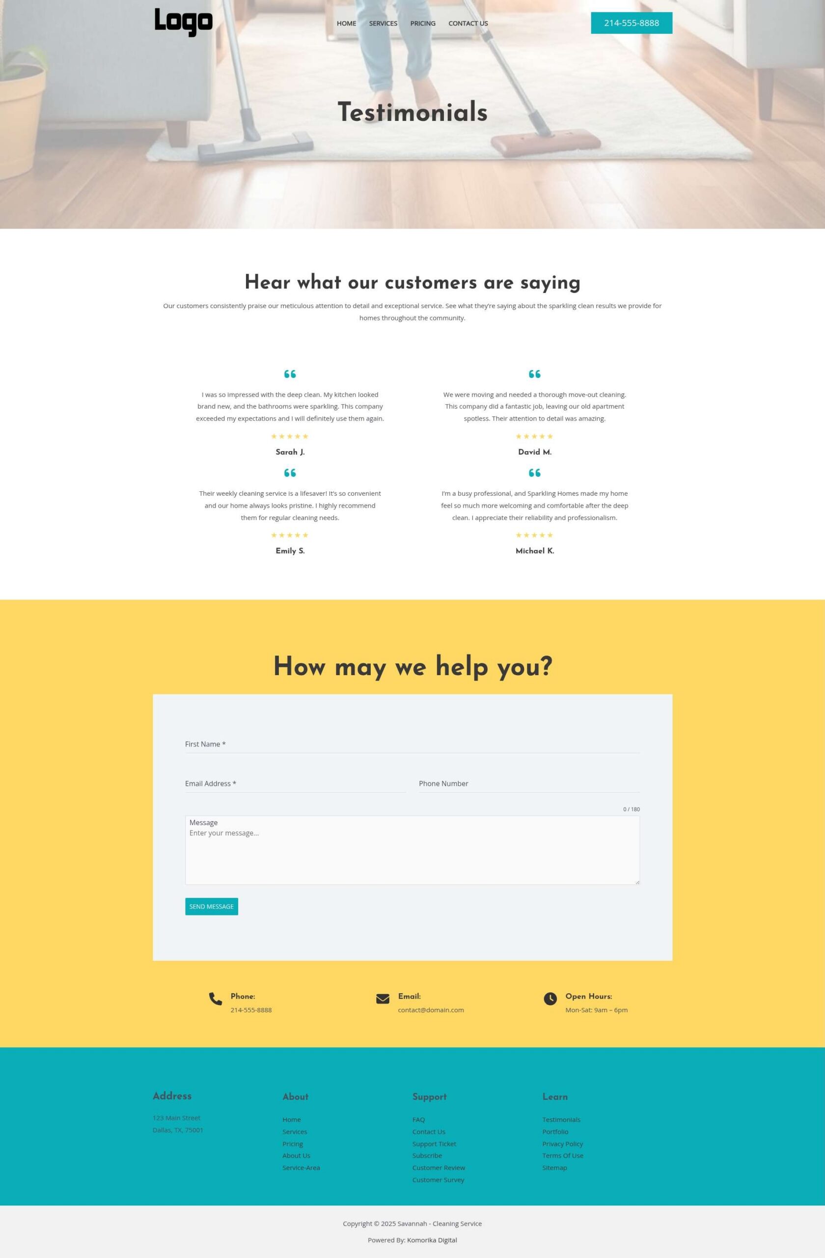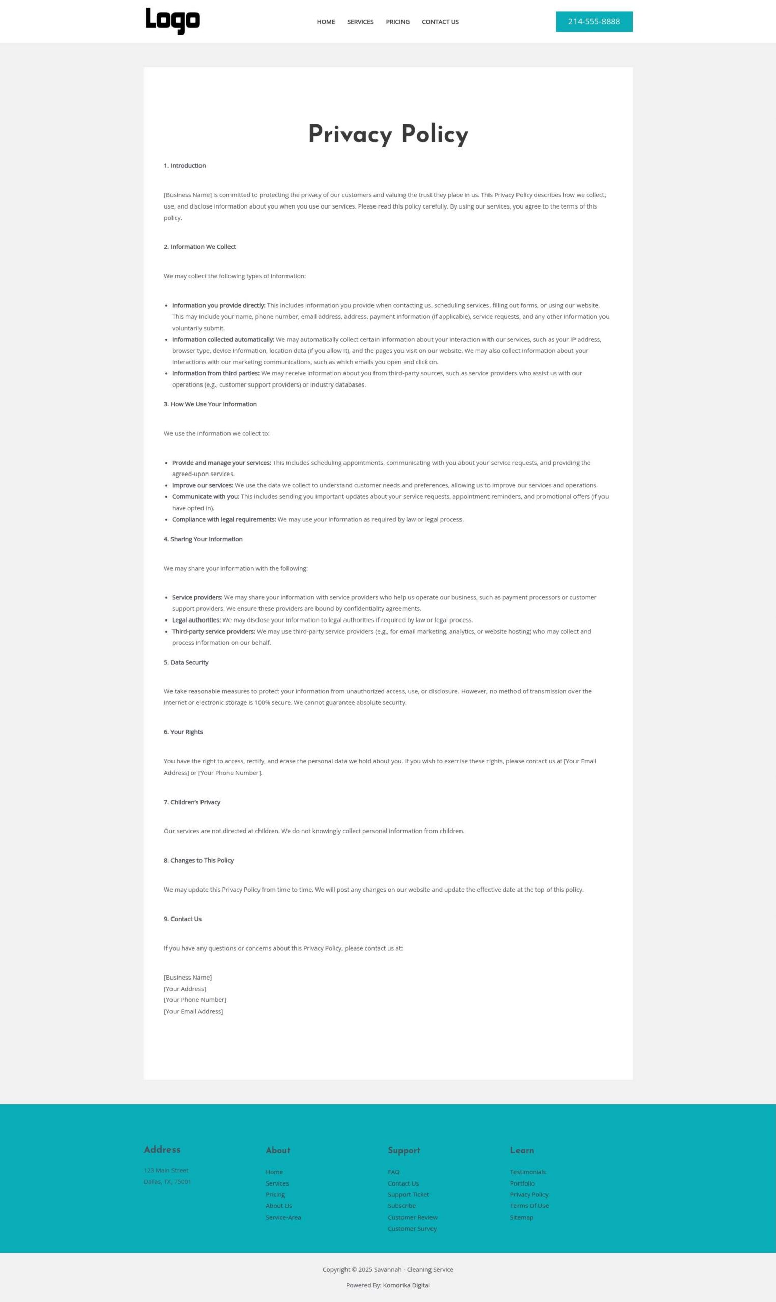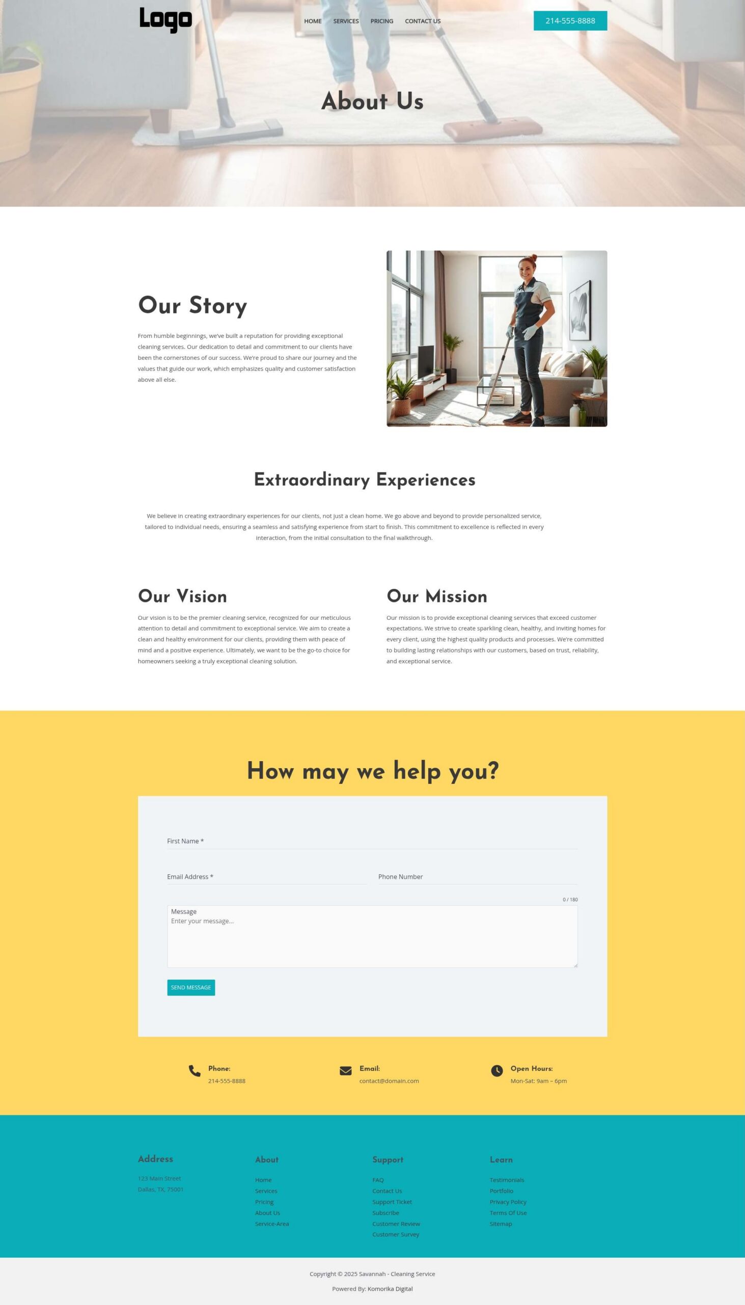 This example features a Local Service Business (Residential Cleaning Service) as a model. The website’s text, images, and branding will be customized to reflect your unique business during development, ensuring complete optimization before your website goes live.