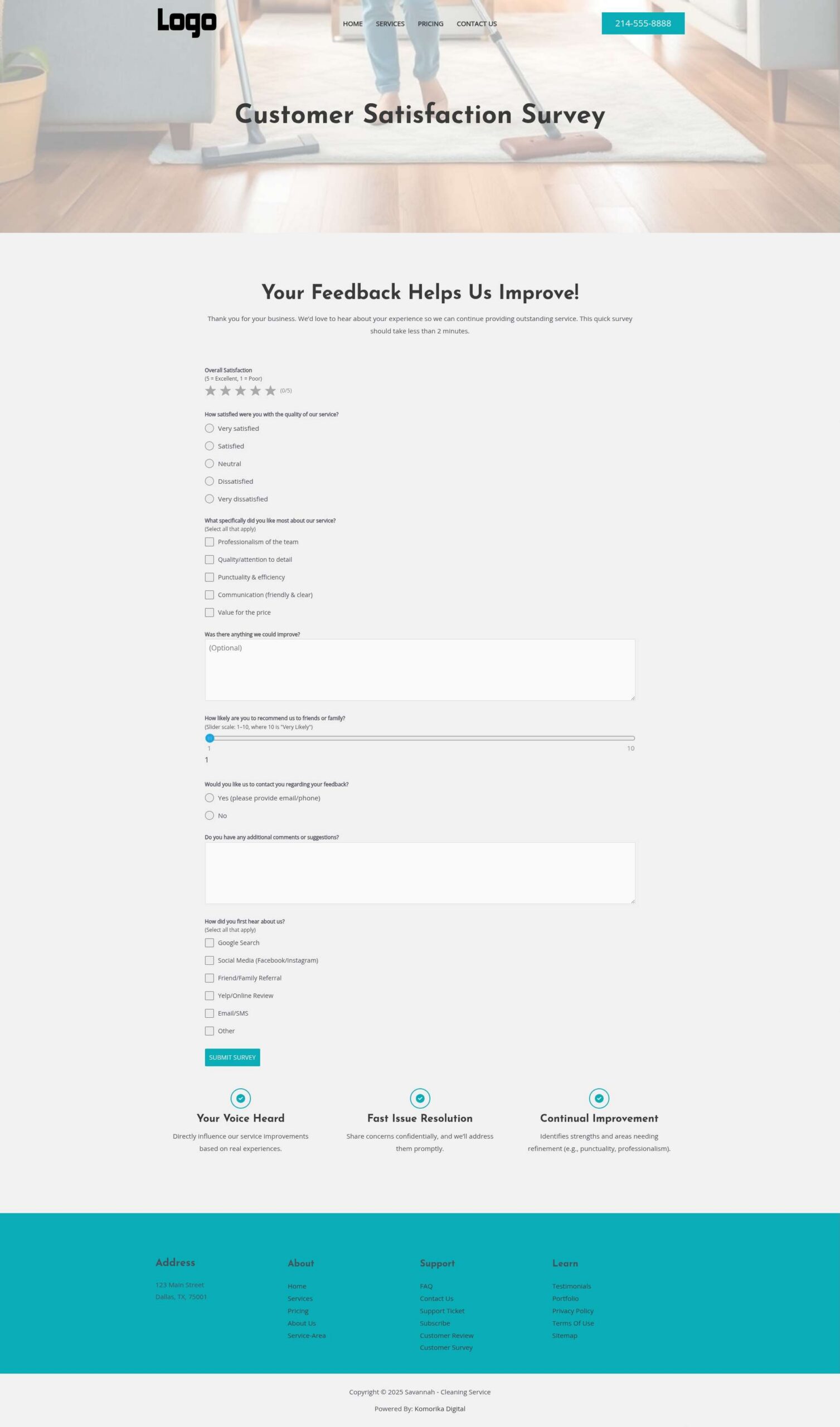 Customer Survey Page